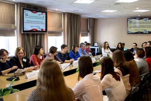 В Саратовском социально-экономическом институте РЭУ им. Г.В. Плеханова начал работу Международный образовательный курс «Understanding Economic Changes» или «Взгляд на экономические перемены». Среди 22 обучающихся – студенты социально-экономического института, а также иностранные студенты из вузов-партнеров Германии (Высшая школа г. Ридлинген и Высшая школа г. Кобленц).