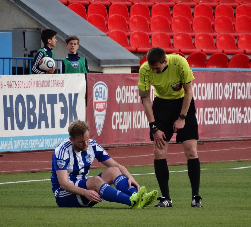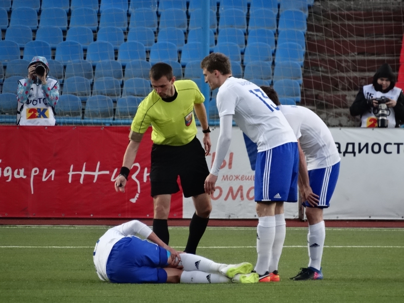 Основные страсти пылали не вокруг поля, а на нем. Уже в дебюте матча была разбита голова у полузащитника «Сокола» Михаила Платики, который до финального свистка отыграл в окровавленной повязке. В дальнейшем медики еще не раз появлялись на газоне. На 79-й минуте травмировался даже главный тренер хозяев Вадим Хафизов. Активно протестуя против одного из решений судьи (саратовцы в это время уже играли вдесятером), он получил травму плеча. Сразу после финального свистка наставник на «Скорой помощи» покинул арену.