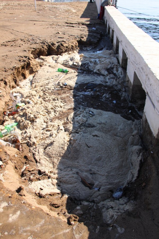 В Саратове Центр пляжных видов спорта, расположенный рядом с мостом на набережной, размывают потоки воды. Он находится рядом с городским пляжем под мостом Саратов-Энгельс. В этом убедился корреспондент ИГ «Четвертая Власть».