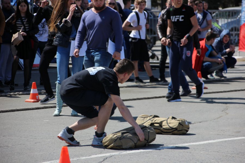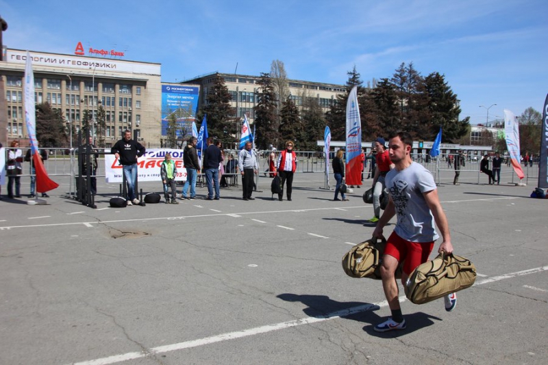 Перед началом соревнований учитель физкультуры из Новобурасского района, который также преподает греко-римскую борьбу, Валерий Кирсанов показал присутствующим, как правильно выполнять задания. Участвует 96 ребят 8-11 классов. Всего проводилось 5 отборочных раундов. Первый – это толкание квадроцикла, второе – «фермерская прогулка», здесь парням нужно было пронести 2 мешка каждый по 30 кг на расстояние 50 метров, третий – подъем гири в 24 кг для каждого возраста свое количество раз, четвертый – тяга к себе автомобиля и финальный, пятый раунд – перекидывание мешков через планку.