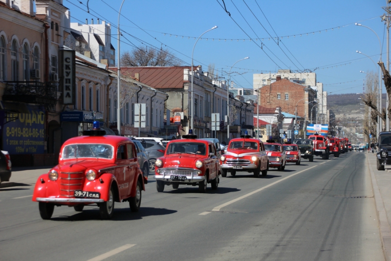 В Саратове состоялся торжественный парад раритетной и современной пожарной техники. Они проехали от ЖД Вокзала по улице Московской до Театральной площади. Всего было около 50 единицы техники. Мероприятие приурочено ко Дню пожарной охраны России, который будет 30 апреля.