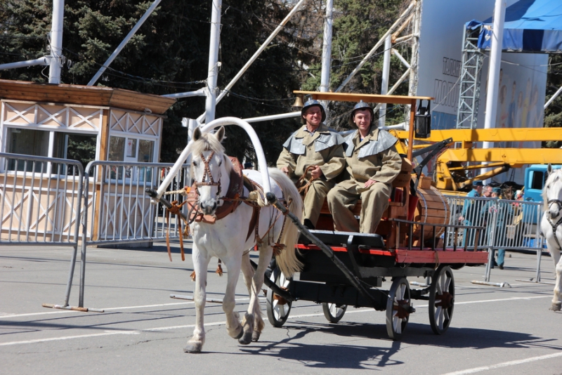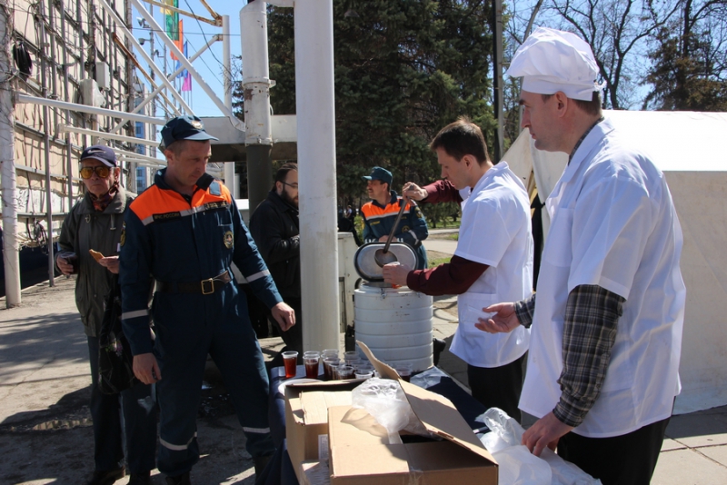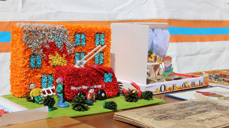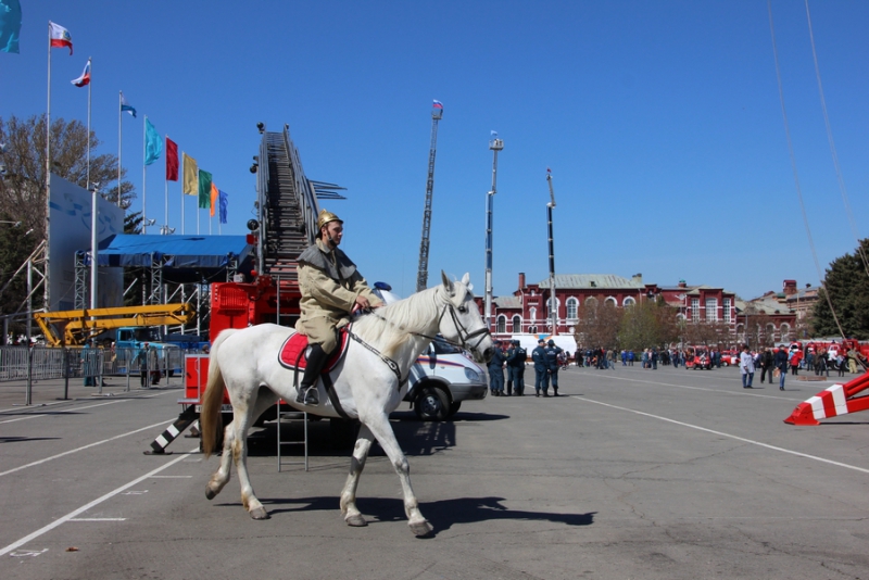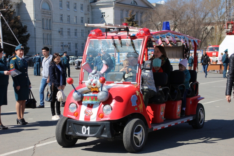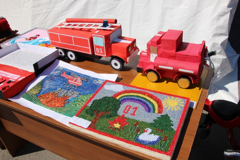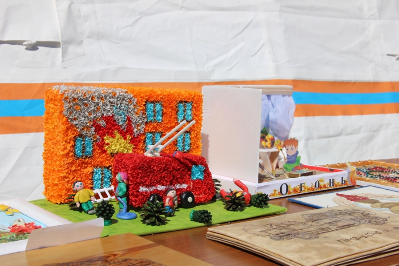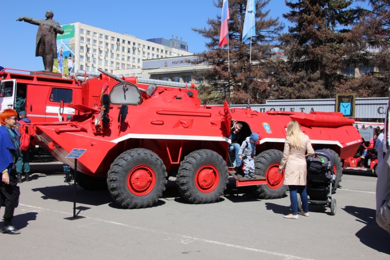 На Театральной площади все желающие могут осмотреть выставку, где представлены поделки детей, а также фотовыставку, которая посвящена юбилейной дате образования пожарного надзора, ей исполняется 90 лет. Также все желающие могут покушать в полевой кухне.