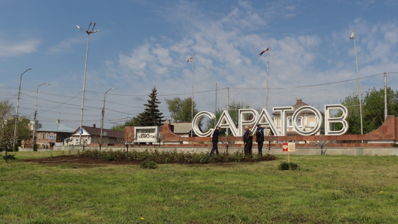 На Славянской площади в Саратове высаживают кустовую розу. Растения украсят стелу «Саратов» на въезде в город со стороны моста через Волгу.