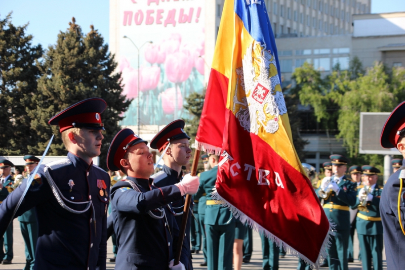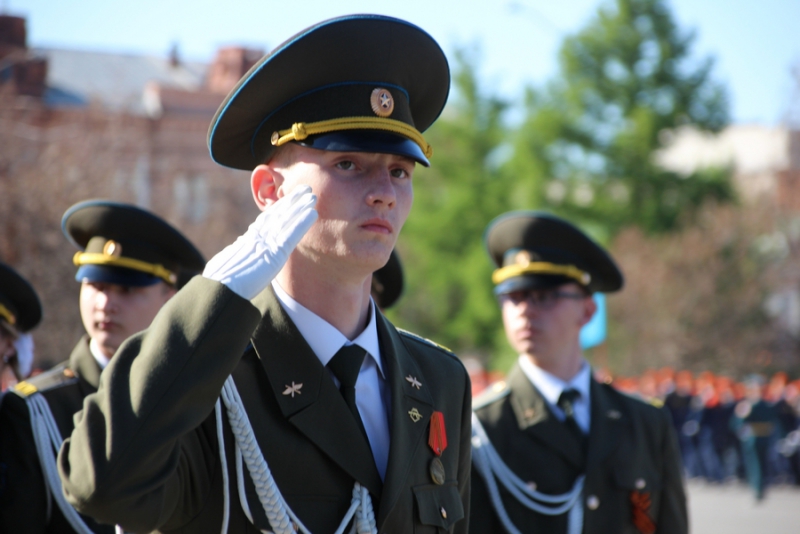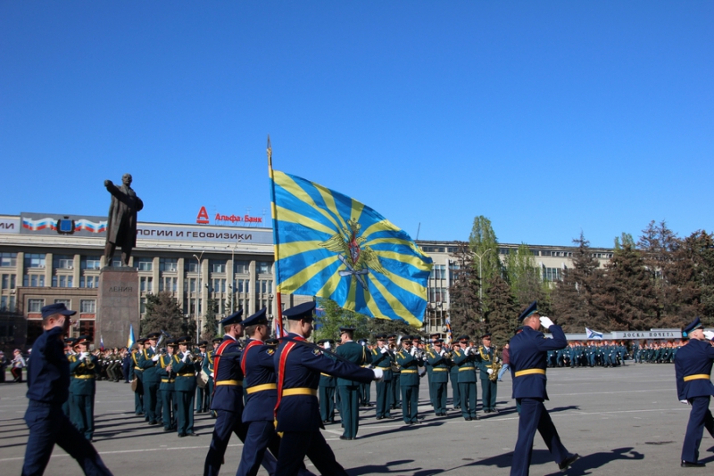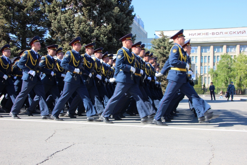 Традиционно сначала прошла знаменная группа со Знаменем Победы и государственным флагом РФ. Следом военачальники поприветствовали войска Саратовского гарнизона.