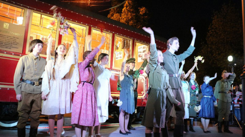 Известно, что трамвай курсировал по городу с 1936 года. По задумке организаторов, именно вокруг «Семена» и происходили все события, связанные с Великой Отечественной войной в городе.В самом начале представления показали время накануне войны. Согласно сценарию ученики 10 класса катались на трамвае. Ребята планировали свой выпускной и размышляли о том, какую профессию выбрать. Уже на балу, протанцевав вальс, они услышали по радио страшную новость о нападении на Советский Союз войск фашисткой Германии. Мальчики решили пойти на фронт, некоторые девочки отправились за ними в качестве медсестер, а остальные ковали победу в тылу, трудясь без устали на заводах.