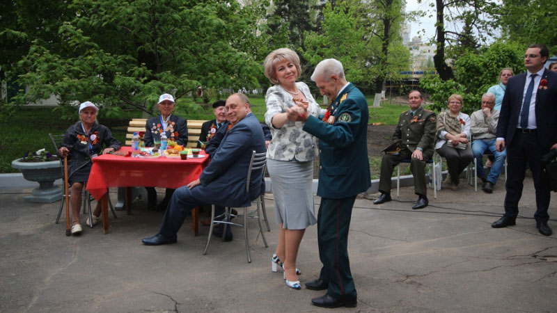 После торжественной речи Радаев присоединился к чаепитию с ветеранами. За соседним столиком расположились члены правительства, а также глава Саратова Валерий Сараев. Когда музыканты в очередной раз играли военный вальс ветеран войны Георгий Фролов пригласил на танец сидевшую рядом министра Татьяну Гаранину, на что чиновница с удовольствием согласилась. К ним присоединились зампред Иван Кузьмин со своей соседкой по столу.