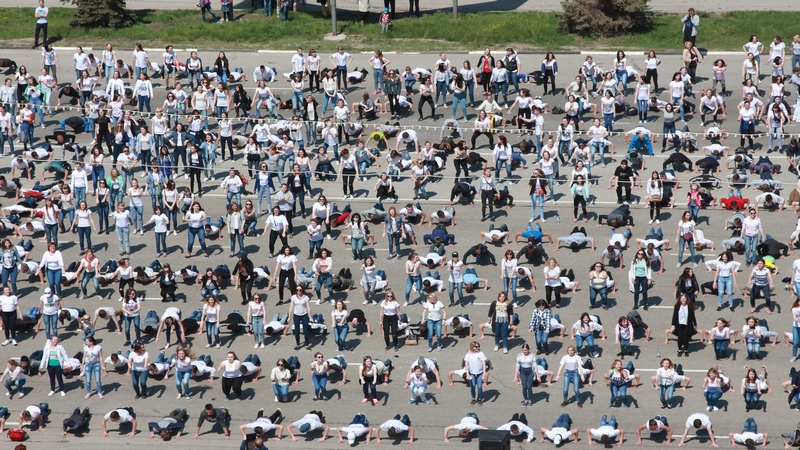 В Балакове Саратовской области молодые люди провели флешмоб «Рекорд Победы». Как сообщает пресс-служба администрации муниципалитета, акция собрала около двух тысяч человек. В ходе мероприятия необходимо было отжаться (для девушек - присесть) в общей сложности 1418 раз. Именно столько дней и ночей длилась Великая Отечественная война 1941-1945гг.