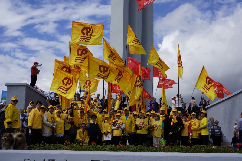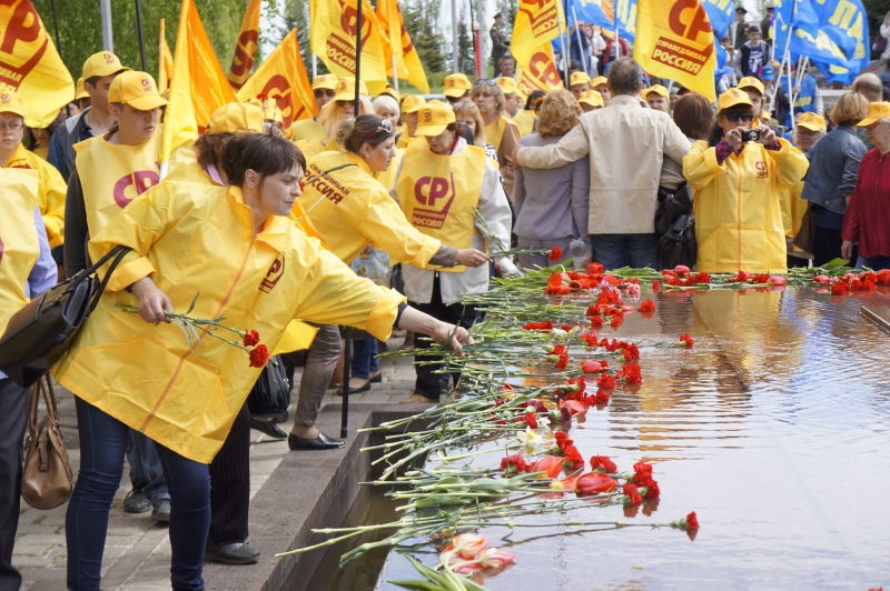 Традиционно, справедливороссы поднялись к монументу «Журавли», со смотровой площадки которого открывается чудесный вид на город, который в 1945 году защитили наши предки, отстояв свою Родину.