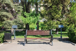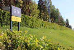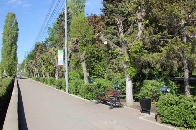 Стенды расположены на протяжении всей Набережной на втором ярусе, но к некоторым из них подобраться невозможно из-за того, что они стоят за кустами.