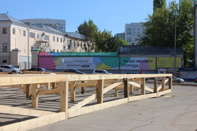 В Саратове около гостиницы «Словакия» начали возводить конструкции к выставке «Музей волжской флотилии». Она должна быть готова к началу урбанистического форума «Среда для жизни. Квартира и город», который пройдет с 13 по 15 мая.