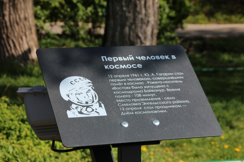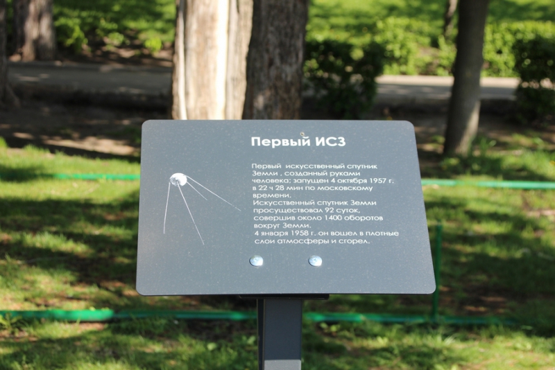Помимо этого здесь можно увидеть небольшие стенды с основной информацией о планетах Солнечной системы, спутниках и космонавтах. Например, про первый искусственный спутник Земли, что он был запущен 4 октября 1957 года, а также информация про первого космонавта планеты.