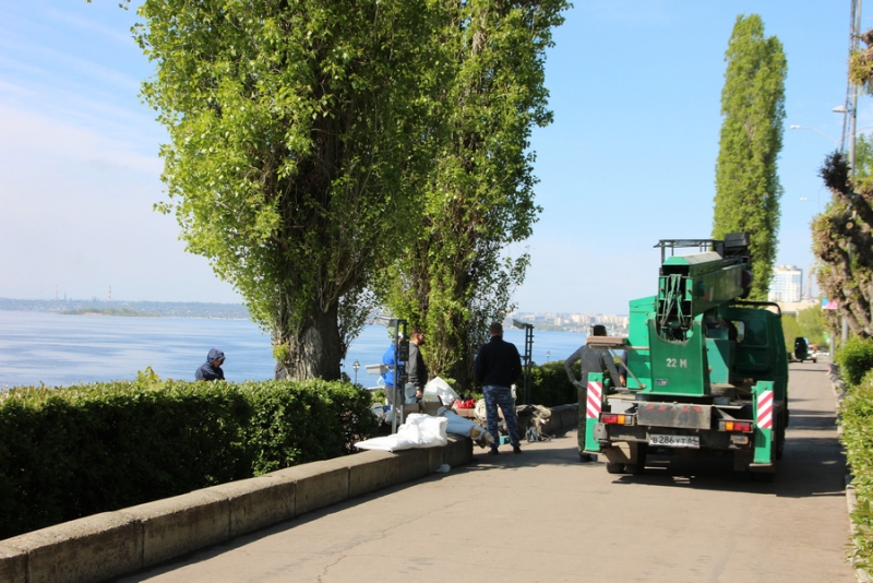 На набережной Саратова готовят выставку волжской флотилии и расставили таблички для туристов