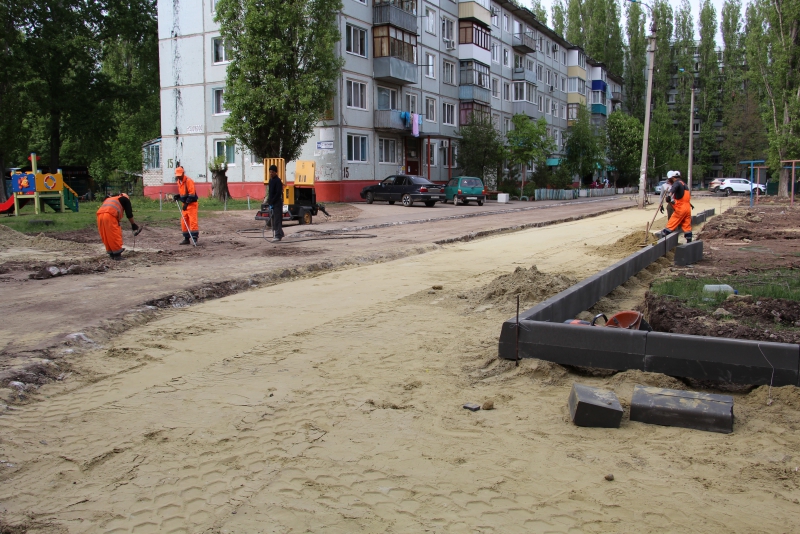 Так, на улице Степной во дворе домов №№74, 88, 86 завершаются работы по установке бордюрного камня и в ближайшее время начнется укладка асфальтобетонного покрытия.