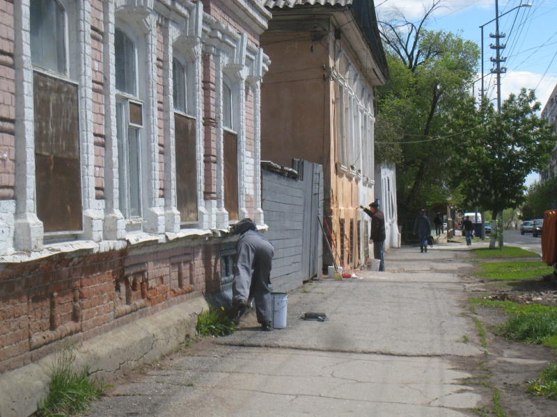Сегодня в центре Саратова началась покраска домов на улице Первомайская. Старинные постройки, с которых осыпалась штукатурка, а местами и вывались кирпичи, ремонтировать не стали. Краска наносится прямо на облупившиеся стены. В этом убедился корреспондент «Четвертой Власти».