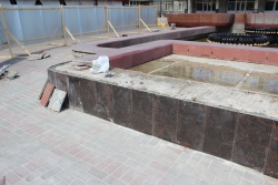 Как сообщил корреспонденту ИГ «Четвертая Власть» руководитель проводящей работы подрядной организации ООО «Балаково мрамор» Павел Порин, сегодня строители приступили ко второму этапу работ – укладыванию новой плитки. До этого с понедельника шел демонтаж старой облицовки фонтана.