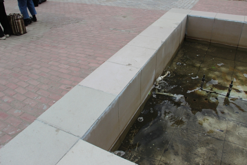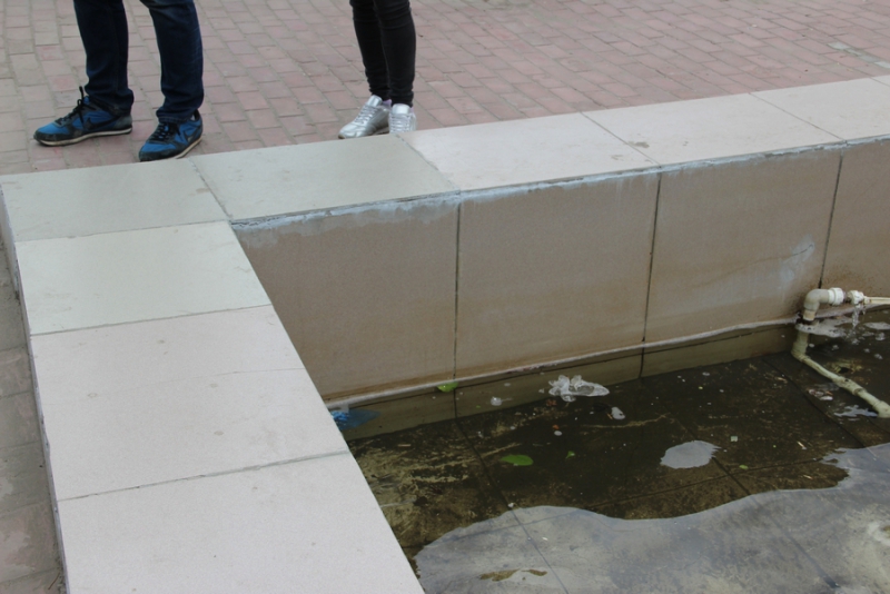 Сами фонтаны работали, однако вода била не изо всех гидрантов. Кроме того, швы между плитками на облицовке сооружений были обработаны некачественно. В некоторых местах плитка и вовсе не совпадала по цвету. Это также стало поводом для критики.