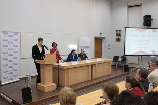 Вы знаете, что «Деловая Россия» объединяет средний и крупный бизнес, который в свою очередь является образующим звеном в экономике страны. Каждый предприниматель прошел свой путь, но начинал он с малого. Вы – то поколение, которое примет эстафету и продолжит славные традиции российского предпринимательства».