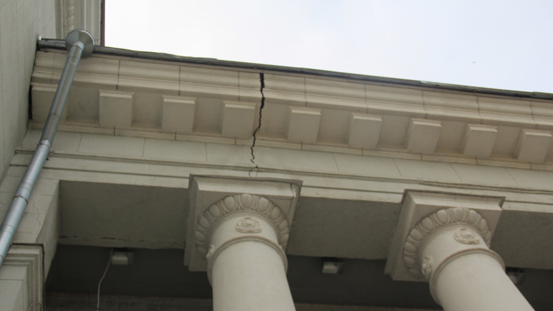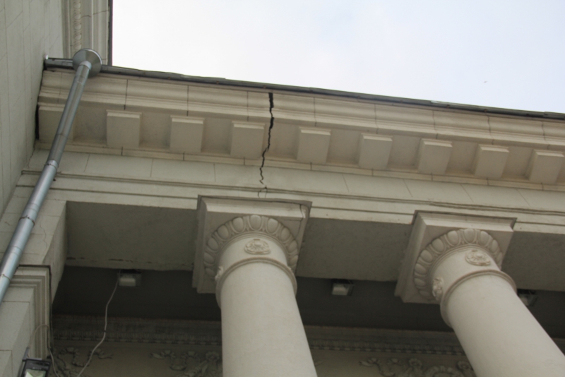 Отметим, что фестиваль будет проходить в здании оперного театра, который буквально покрыт трещинами и разломами, не только с фасада, но и внутри помещения.