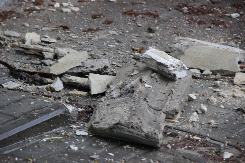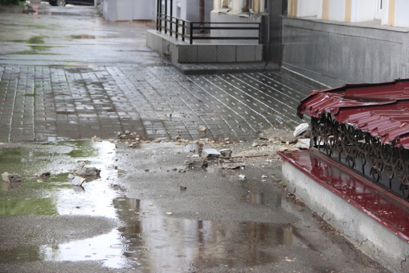 В самом центре Саратова у дома №26 по улице Московской отвалилась часть карниза. Ее остатки в настоящий момент лежат неубранными рядом с двухэтажным зданием. Они занимают на тротуаре примерно полтора метра в длину и метр в ширину.