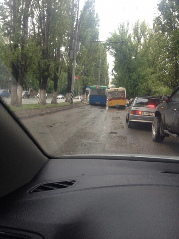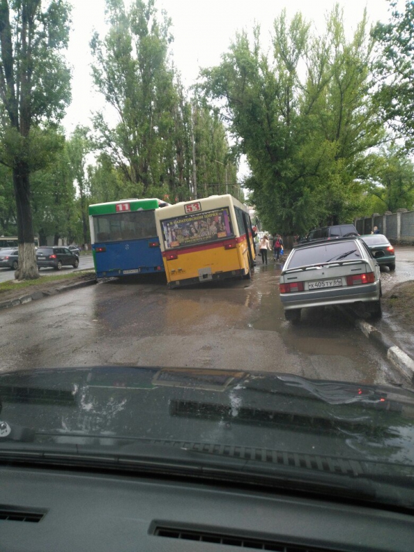ДТП случилось около 1,5 часов назад на проспекте Строителей. Автобусы №11 и 53 угодили в промоину на проезжей части. При этом они едва не столкнулись. К тому же, провалившись в яму, 53-й сильно накренился.