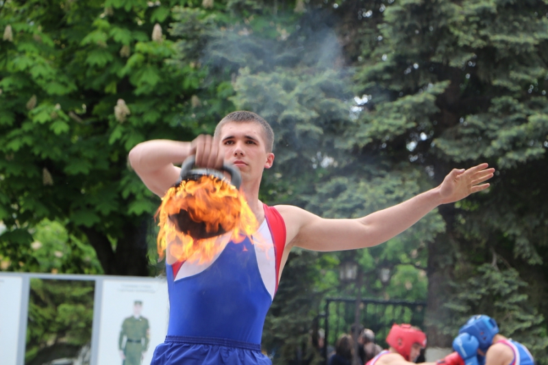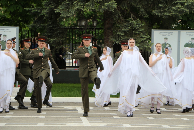 После торжественной части на плацу института состоялась историческая реконструкция развития учреждения с прохождением военной техники, выступлением роты почетного караула и спецназа.