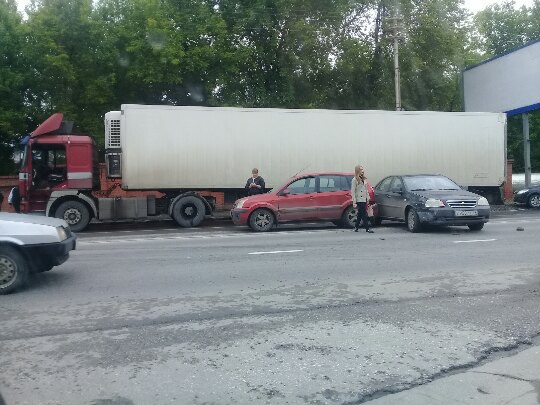 Около получаса назад на перекрестке улицы Соколовой и Мурманского проезда столкнулись грузовик и два легковых автомобиля. ДТП случилось напротив въезда на Воскресенское кладбище.