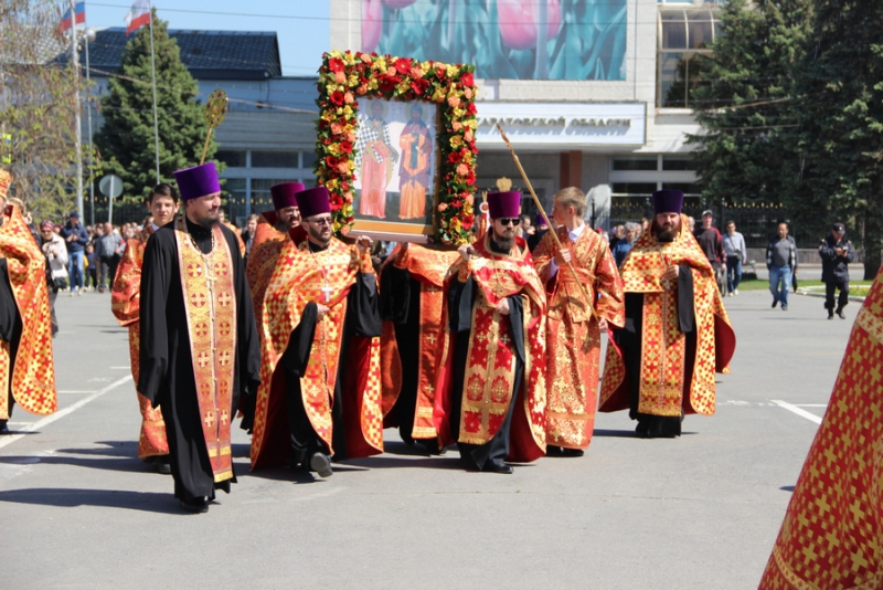 По окончании Крестного хода Епископ Покровский и Николаевский Пахомий совершил молебен возле Александро-Невской часовни. По окончании службы он напомнил собравшимся о том, насколько важно сохранять в себе веру в Бога и святых и беречь те духовные традиции, которые объединяют народ России.