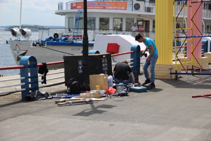 Сегодня в Саратове на Набережной Космонавтов устанавливают гигантские качели. Этот объект располагался здесь во время фестиваля «Городские выходные», который проходил в облцентре в период с 13 по 14 мая 2017 года. Работы ведутся на самом нижнем ярусе у воды между третьим и вторым причалом.