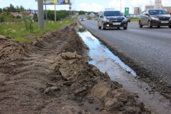 Журналистов удивило, в каком состоянии находится обочина около отремонтированной дороги. На ней грязь и лужи, которые делают почти невозможным проход людей. На вопрос когда обочина будет приведена в нормативное состояние, Николай Пантели ответил, что «сроки до конца октября».