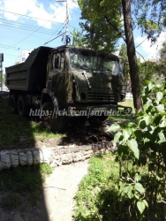 По фотографиям видно, что «КамАЗ» переехал бордюр и врезался в дерево в нескольких метрах от стены жилого дома. У грузовика с правой стороны помята кабина и треснуло лобовое стекло. Очевидцы происшествия написали в комментариях, что «водила жив и здоров, в метре от меня пролетел, снес борт «ГАЗели».