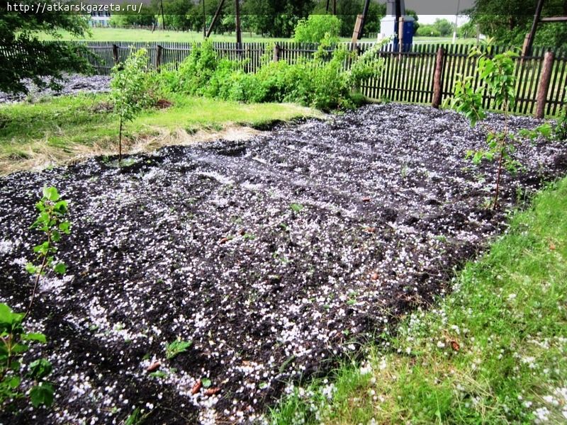 Порывистый ветер с ливнем и градом пронесся над населенным пунктом около 15.00. Стихия бушевала около получаса. По информации сельчан, град размером от вишни до куриного яйца повредил значительную часть высаженной в огородах рассады помидоров и огурцов.