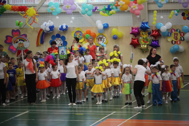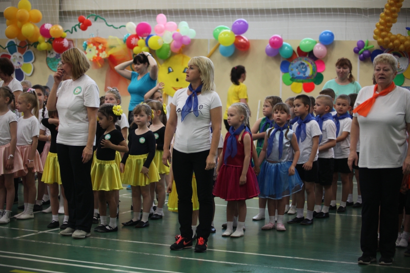 Малыши, их родители и педагоги демонстрировали свои достижения в области ритмического танца, хореографии и строевых упражнений. В формате флеш-моба танцевальную композицию «Лето» выполнили инструкторы по физической культуре и воспитатели.