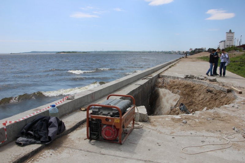 Название организации, которая ведет работы на набережной, а также личность буйного рабочего сейчас устанавливаются.