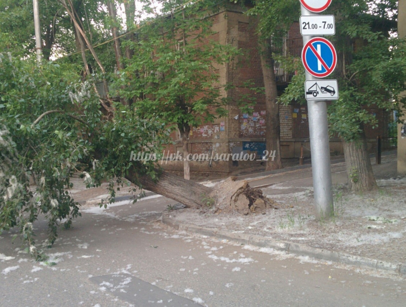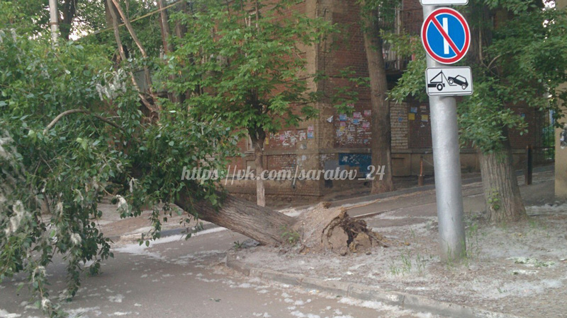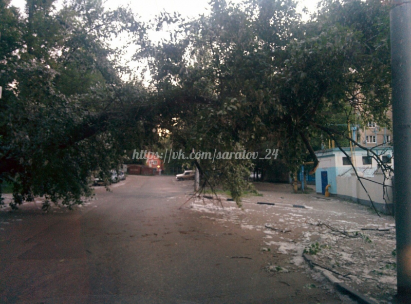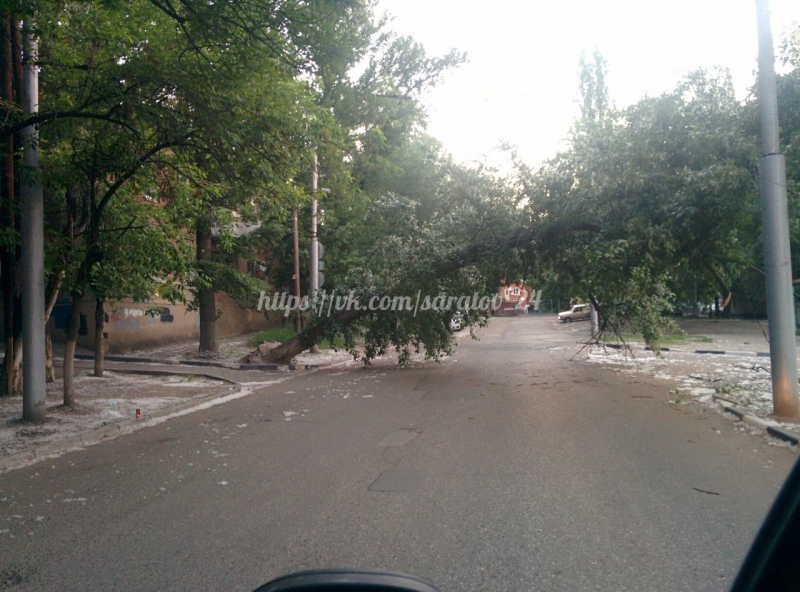 Сегодня рано утром в Саратове неподалеку от Привокзальной площади на дорогу упало дерево. Как сообщили очевидцы в группе «Саратов онлайн», это произошло примерно в 4.30 на улице Аткарской на участке от Кутякова до Посадского.