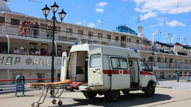 По предварительной информации, капитан пассажирского судна принял решение пришвартоваться у причала из-за заболевшей туристки. У пожилой женщины обнаружились проблемы с сердцем.