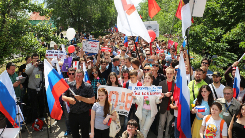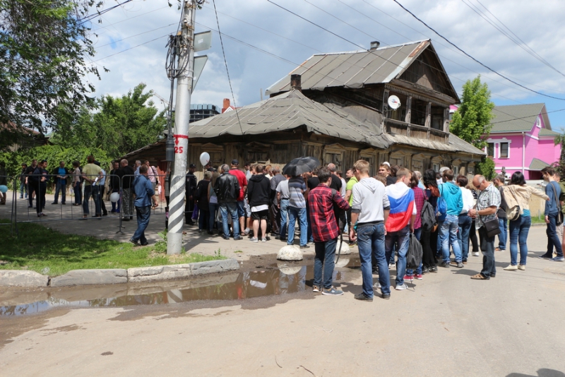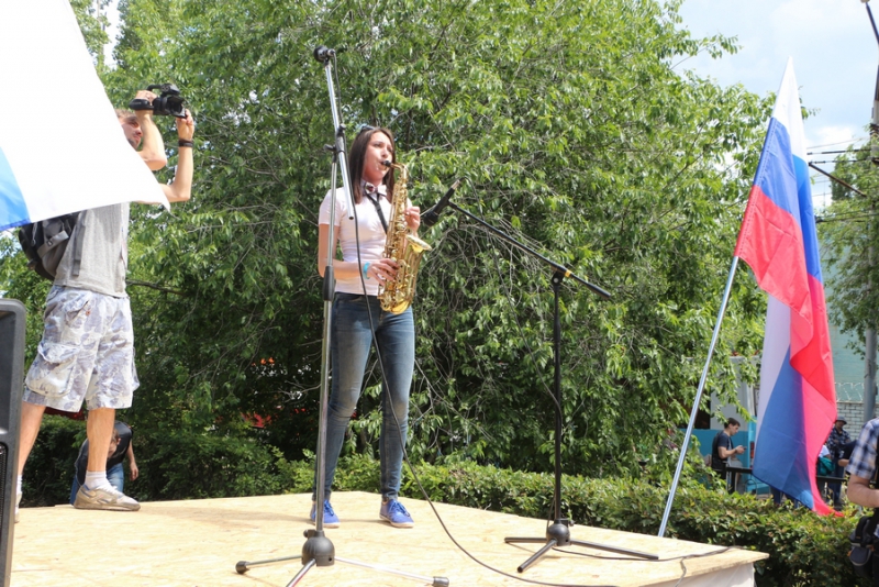Для общения с участниками организаторы массового мероприятия соорудили сцену из деревянных стеллажей. С нее вещал координатор регионального штаба Алексея Навального Эльнур Байрамов. Он объявил, что на митинг сегодня собрались «патриоты своей страны». После чего для публики выступила молодая саксофонистка, исполнив несколько композиций.