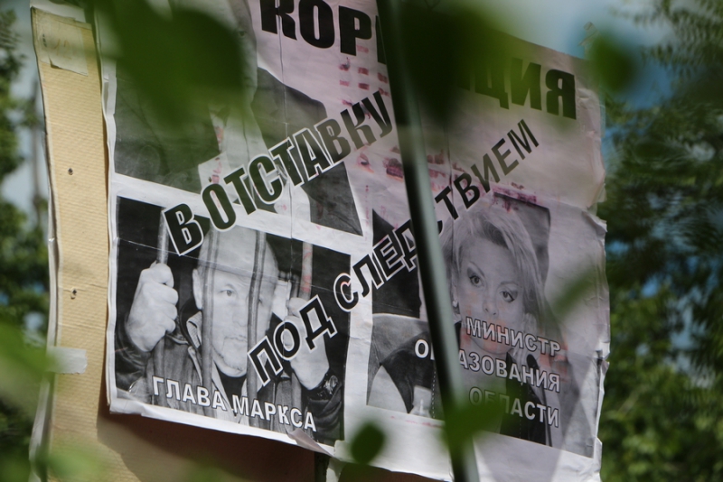 На митинге также выступили представители КПРФ Александр Анидалов и Николай Бондаренко. Они напомнили об уголовных делах по коррупционным преступлениям в отношении экс-главы Марксовского района Олега Тополя и бывшего министра образования региона Марины Епифановой.