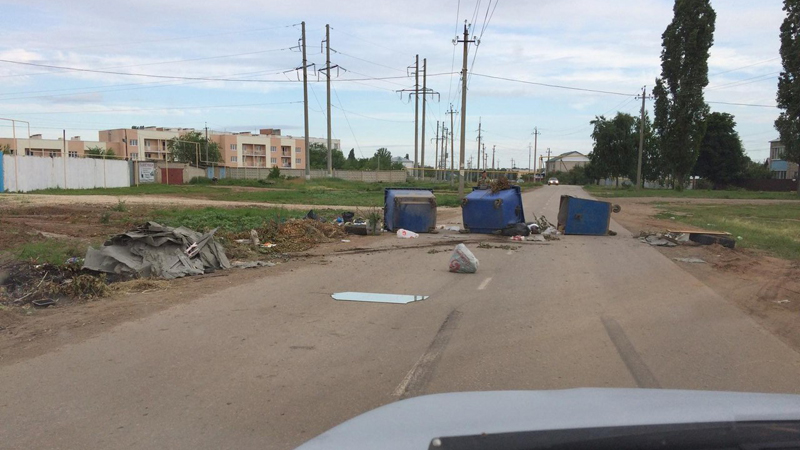В Марксе неизвестные перекрыли проезжую часть мусорными контейнерами