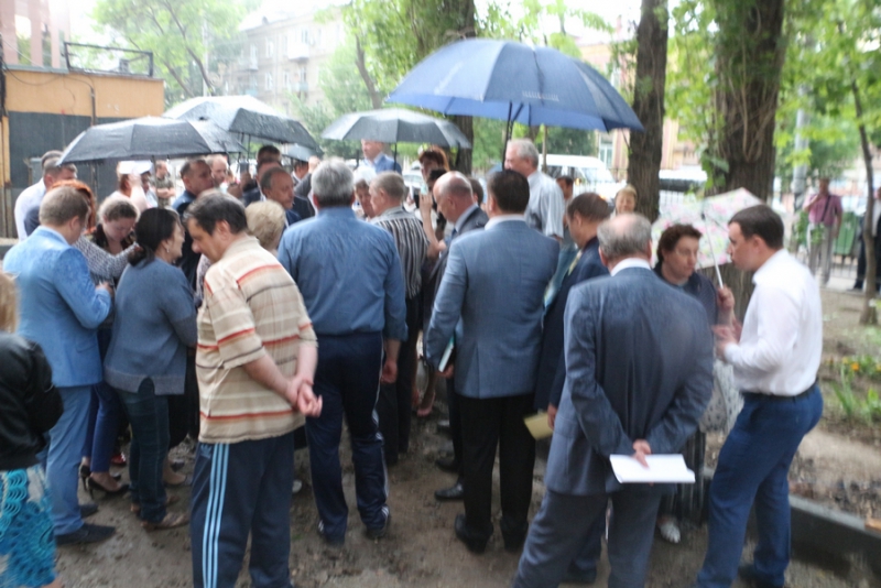 Затем врио губернатора переместился во двор дома №17/19 по Сакко и Ванцетти в Октябрьском районе. Там тоже ведутся работы по укладке асфальта.