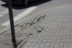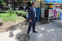 Сначала общественники посетили сквер на пересечении улиц Рахова и Московской. Здесь на проезжей части по Рахова до сих пор не заделали яму, которая образовалась несколько месяцев назад. Сквер, о котором неоднократно писала ИГ «Четвертая Власть» снова вызвал нарекания проверяющих. Евгений Лузановский обратил внимание, что до сих пор с перебоями работают фонтаны, их облицовка выполнена некачественно: под плиткой есть пустоты, швы сделаны грубо и диссонируют друг с другом. Директор «Дорожного контроля» Николай Гурин отметил, что на тротуаре играет плитка, местами она уже выбита и провалилась. Он подчеркнул, что, несмотря на неоднократные публикации в прессе, тротуар все еще остается в ненадлежащем состоянии.