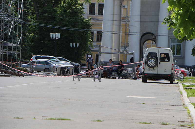 Сегодня на Театральной площади начались работы по установке сцены для проведения масштабного праздника выпускников «Роза ветров».