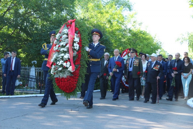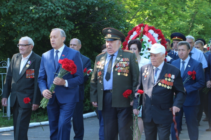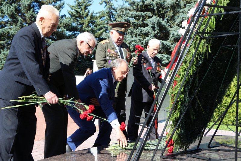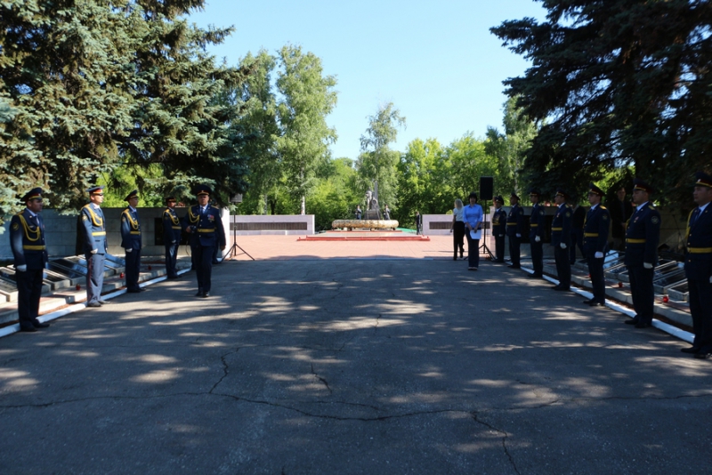 Началось все с минуты молчания в память о погибших в годы Великой Отечественной войны. Затем участники церемонии возложили цветы к памятнику Воину-освободителю.