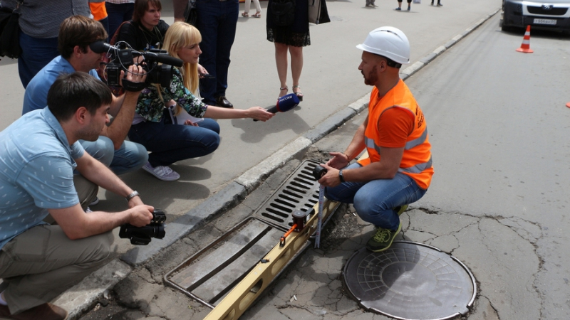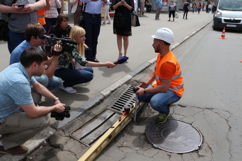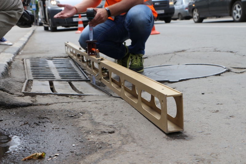 Первым пунктом осмотра стал участок улицы Чапаева в районе Крытого рынка. На полосе, где обычно останавливаются автобусы, проверяющие обнаружили просадку решетки ливневой канализации на 13 см. По словам экспертов, такое недопустимо и должно исправляться сразу же, чтобы не допустить дальнейших разрушений.
