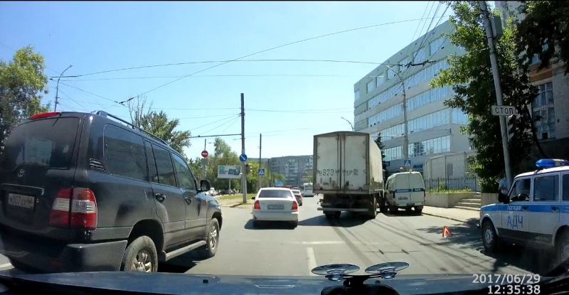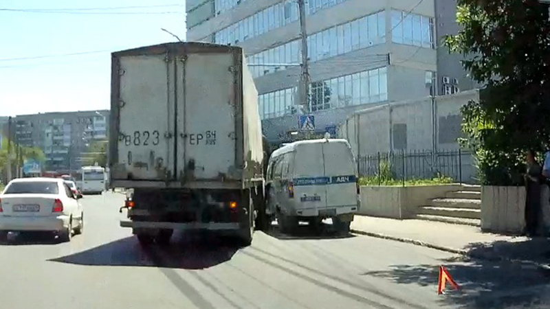 Сегодня днем в центре Саратова в аварию попала машина полиции и «КамАЗ». Об этом «Четвертой Власти» рассказал очевидец.