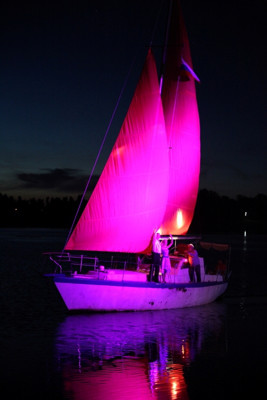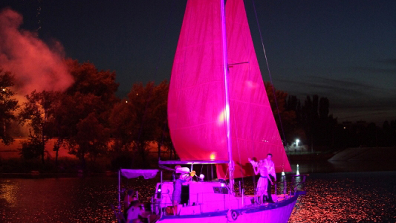Традиционным финалом праздника стало появление на водной глади канала судна с алыми парусами и фейерверк, раскрасивший небо всеми цветами радуги.