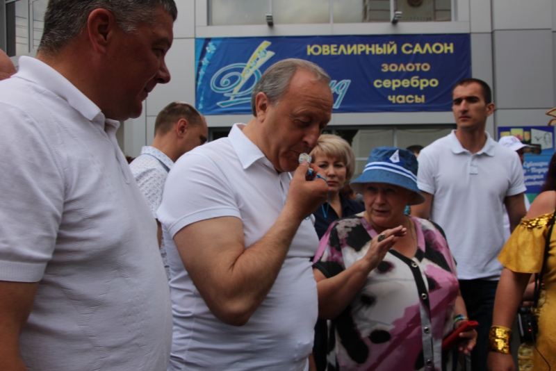 В этом году организаторы учли недочеты прошлого года и часть площадок перенесли на площадь к универмагу. Здесь разместились лотки мастеров декоративно-прикладного искусства. Проходящему мимо торгующего люда врио губернатора Валерию Радаеву подарили свистульку. «Вы в нее свистните, и все будут знать, что вы на работе», - посоветовала женщина, которая проводила для главы региона экскурсию. Он согласился: «Да, чтобы они не расслаблялись».