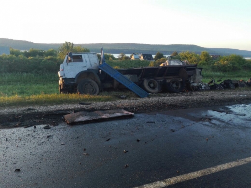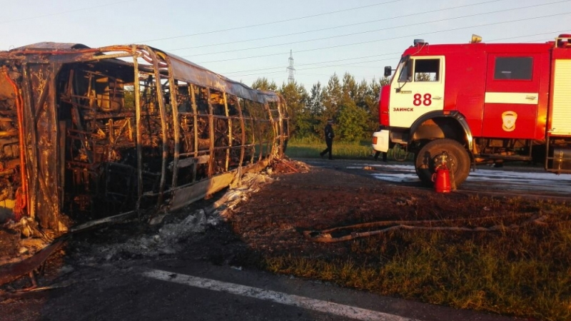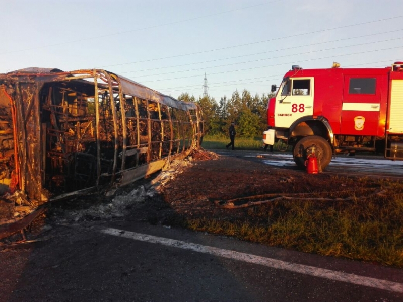 По предварительным данным, ночью 2 июля в 9-ти километрах от города Заинска автобус «Самара-Ижевск» марки «Неоплан» под управлением 56-летнего водителя врезался в попутный грузовик «КамАЗ». Причем последний буксировал на жесткой сцепке другой большегруз «МАН». В итоге автобус перевернулся и загорелся. Из 29 человек в автобусе от полученных травм скончались 14 человек, остальные попали в больницу, в том числе водитель.