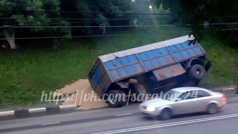 В Саратове перевернулся прицеп с зерном «на радость птичкам»