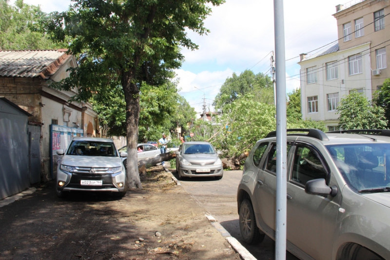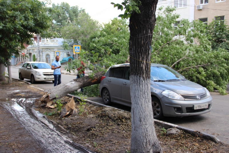 В центре Саратова дерево смяло иномарку и перегородило улицу