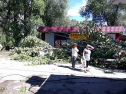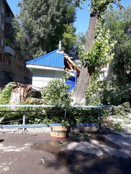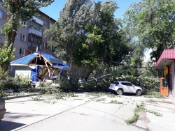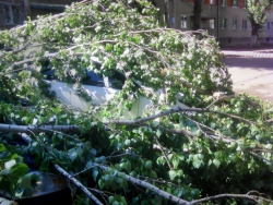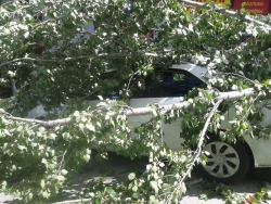 Напомним, ранее упавшее дерево на улице Мичурина также повредило припаркованный в этом месте «Ниссан Тиида» и перегородило проезжую часть. Автомобилисты объезжали препятствие по тротуару в узком пространстве между домами и деревьями.